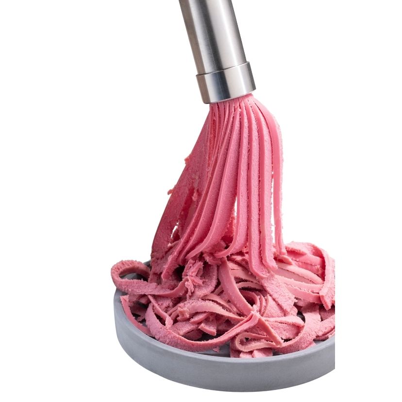 Julienne Sausage Slicer is made of stainless steel except the pusher and is long-lasting and durable. This device, which is extremely easy to clean, is portable and very simple to use thanks to its compact structure. In addition, the pusher and blade parts can be disassembled, which facilitates maintenance and offers practical use.