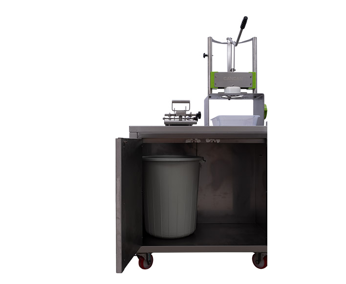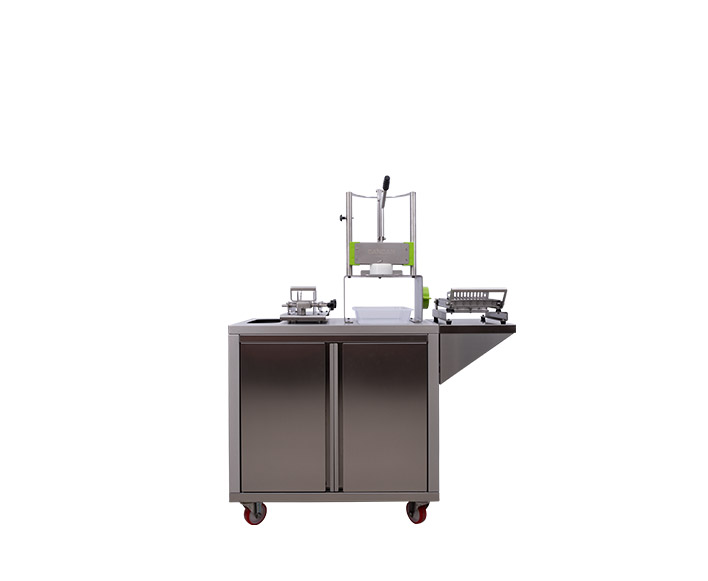 Süpermarketler ve manavlar için dizayn edilmiş standıyla Ananas Giyotin, Ananas Soyma ve Ananas Dilimleme makinelerini bir araya getirerek alandan tasarruf etmeyi ve ananasları stant raflarında depolama imkanı sunar. Çöp haznesiyle kesim sırasında kolaylık sağlar.
