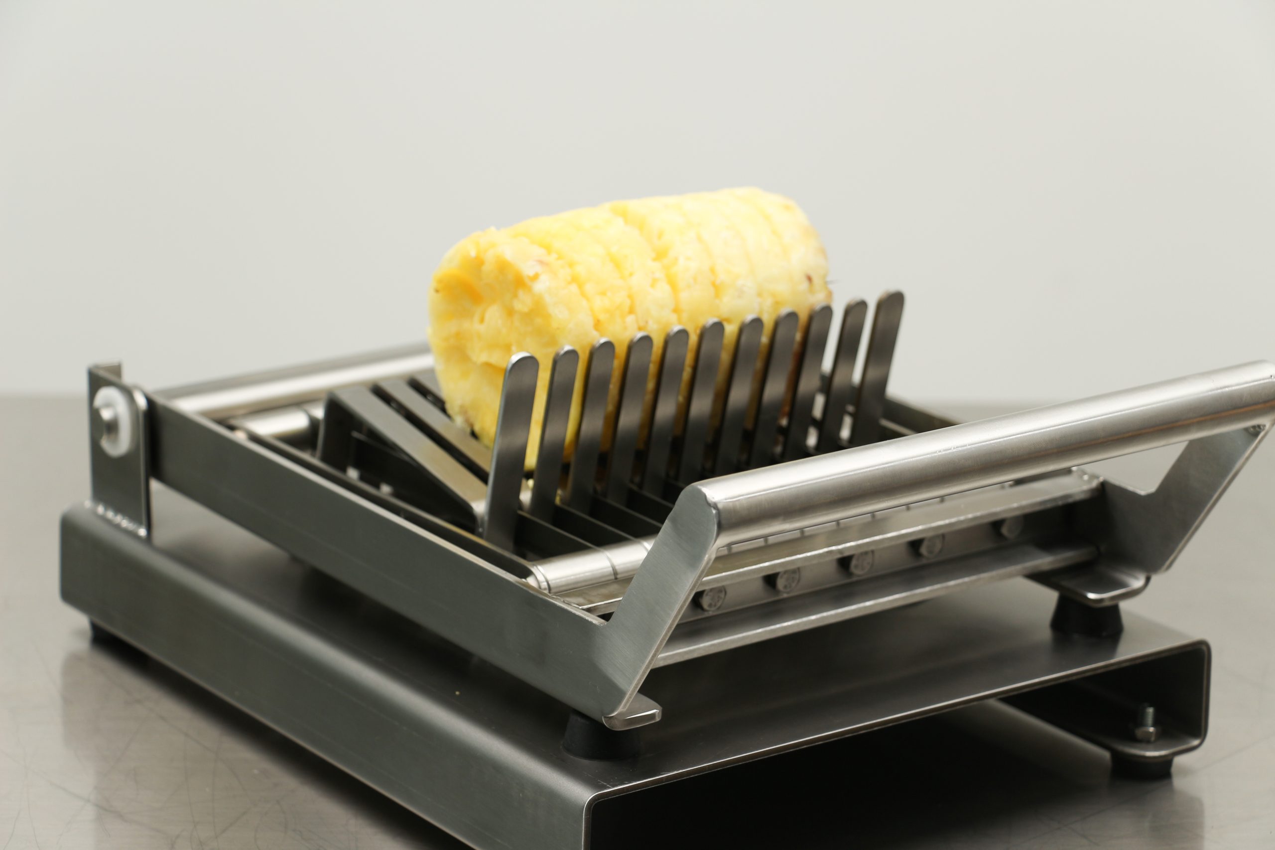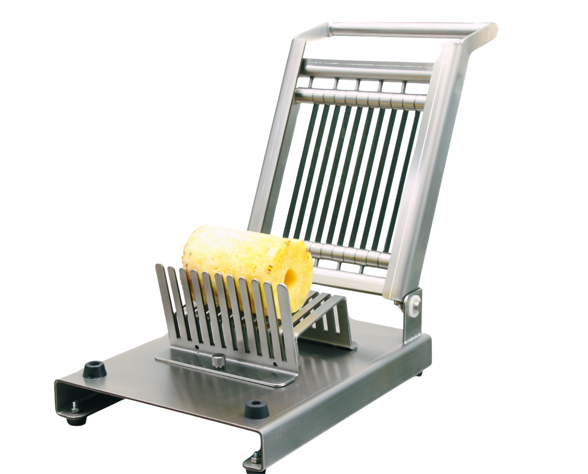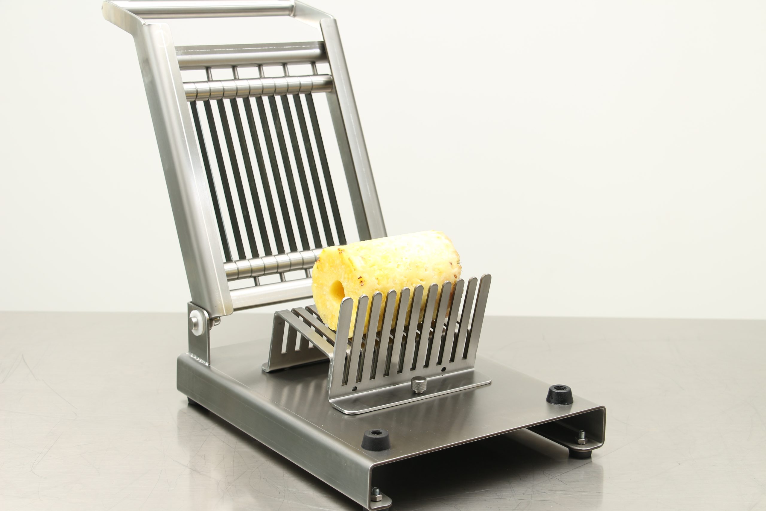 Süpermarket, otel, restoran ve manavlarda kullanılmak üzere tasarlanmış Manuel Ananas Dilimleme, ananasları eşit parçalarda dilimlemeyi kolaylaştırır. İşlevsel tasarımı ve keskin bıçakları sayesinde dilimleme işlemini hızlı ve etkili bir şekilde gerçekleştirir.